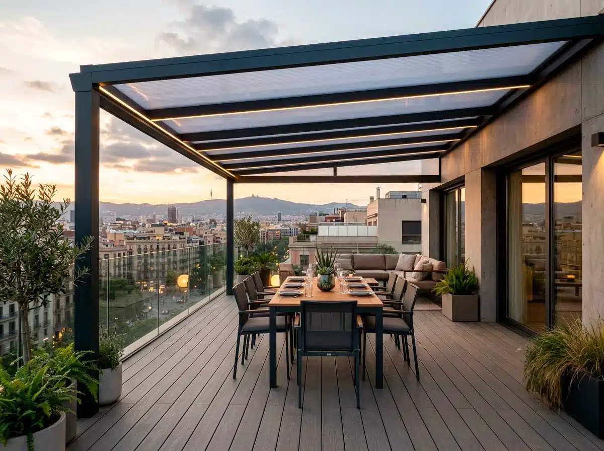 Una pérgola de policarbonato permite crear un espacio exterior luminoso, cómodo y protegido durante gran parte del año. Su éxito no está solo en la estética: también ofrece una solución resistente, ligera y práctica para terrazas, patios y jardines.